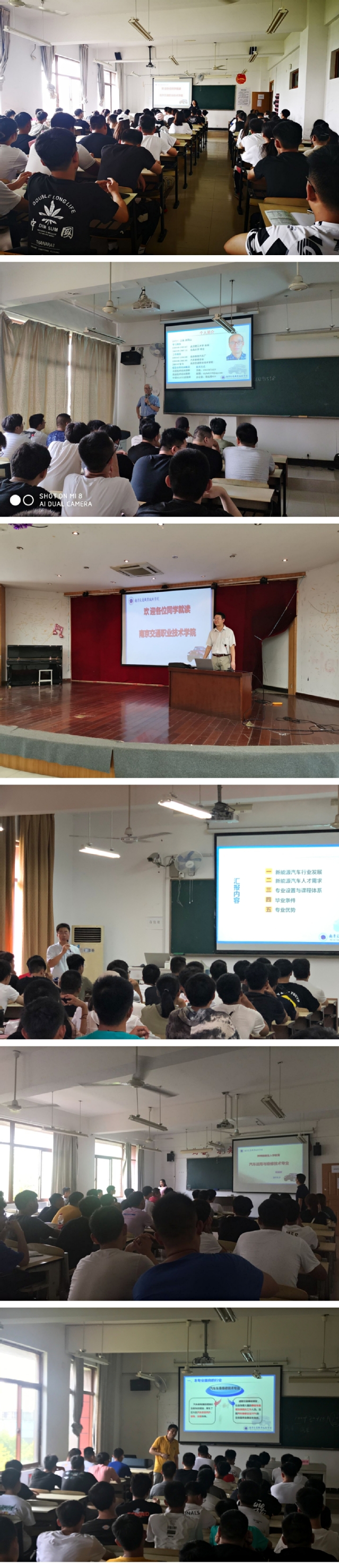 为了新生进一步了解所学专业现状及发展情况,增强对本专业的认知程度,根据学院统一安排,9月11—12日,副院长程丽群、陈勇以及教研室主任、专业带头人边伟、谢剑、胡俊、刘奕贯等6位老师分别给汽车运用与维修技术、汽车车身维修技术、新能源汽车与维修、汽车营销与服务等4个专业新生进行了专业认知教育。
