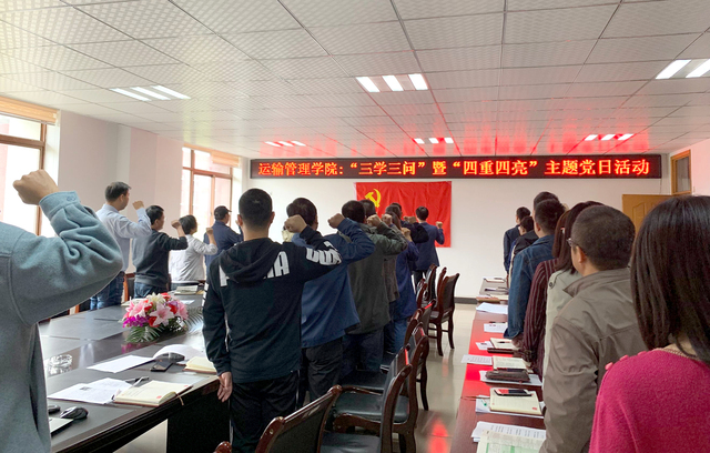 10月16日下午,运输管理学院党总支举行了“三学三问”暨“四重四亮”专题党日活动,学校联系院领导、纪委书记崔建宁,二级学院全体班子成员及全体党员参加。