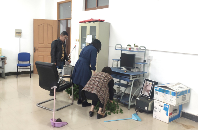 10月16日下午,人文艺术系党总支、基础教学部直属党支部、马克思主义学院直属党支部组织全体党员联合开展“党员齐动手 扮靓明德楼”党日活动。党员同志们拿起扫帚、抹布、铲刀等劳动工具,撸起袖子,走进明德楼的每一间办公室、教室、厕所、楼道、走廊,清除小广告,捡拾白色垃圾,清理楼道杂物,进行环境卫生的清洁。劳动中,党员们发挥不嫌脏、不怕累的志愿者服务精神,确保清除每一个卫生死角。