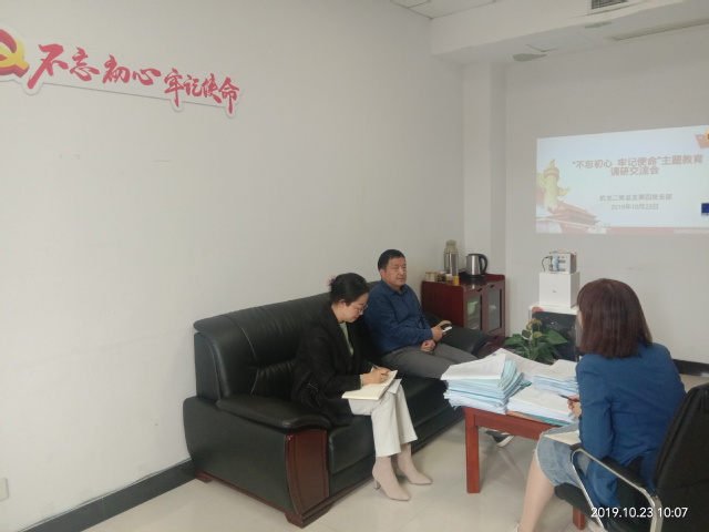 10月23日上午,机关二党总支第四支部召开“不忘初心、牢记使命”主题教育调研交流会,对照“守初心、担使命,找差距、抓落实”总要求,交流调研成果,梳理存在问题,找准工作短板。会议由支部书记王黛碧主持,王平、王宁做重点发言。