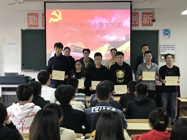 11月6日下午,轨道交通学院第三十四期党校结业暨第三十五期党校开班典礼在明志楼304教室举行,此次开班典礼由辅导员侍元元主持,学院党总支书记滕兆霞、副书记沈丽琴、学工办主任周昊明出席,67名入党积极分子积极参加。