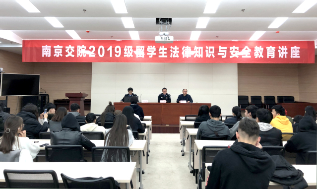 11月27日下午,学院特邀南京市江宁公安分局出入境管理大队吕军教导员、王晨星警官为我院2019级留学生举办“来华留学生法律知识和安全教育讲座”。来自哈萨克斯坦、乌兹别克斯坦、老挝、泰国、蒙古等9个国家的留学生和国际合作与交流办公室相关人员参加了本次活动。专题讲座由保卫处周家明副处长主持。