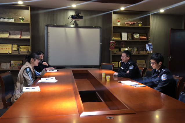 专题讲座后,两位警官实地走访了留学生教室,查看了相关档案,并与国际合作与交流办公室主任袁茜进行了座谈,双方主要就来华留学生的日常管理、跨文化交流、搭建留学生服务社区平台等方面进行了深度沟通。