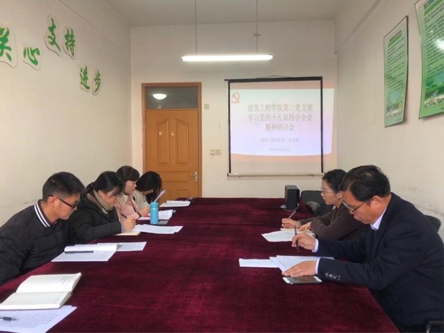 为深入学习贯彻党的十九届四中全会精神,11月28日上午,建筑工程学院第二党支部召开了学习十九届四中全会精神的专题研讨会。会议由第二党支部书记曹莹主持,第二党支部全体党员参会。