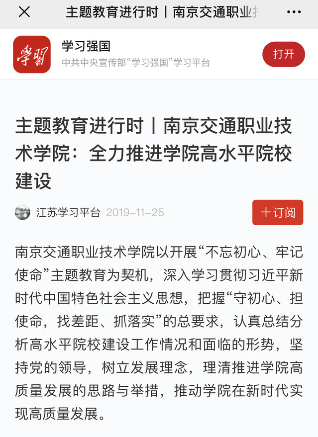 【学习强国】主题教育进行时|南京交通职业技术学院:全力推进学院高水平建设