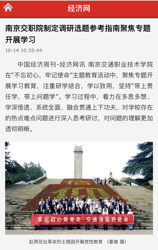 【经济网】南京交职院制定调研选题参考指南聚焦专题开展学习
