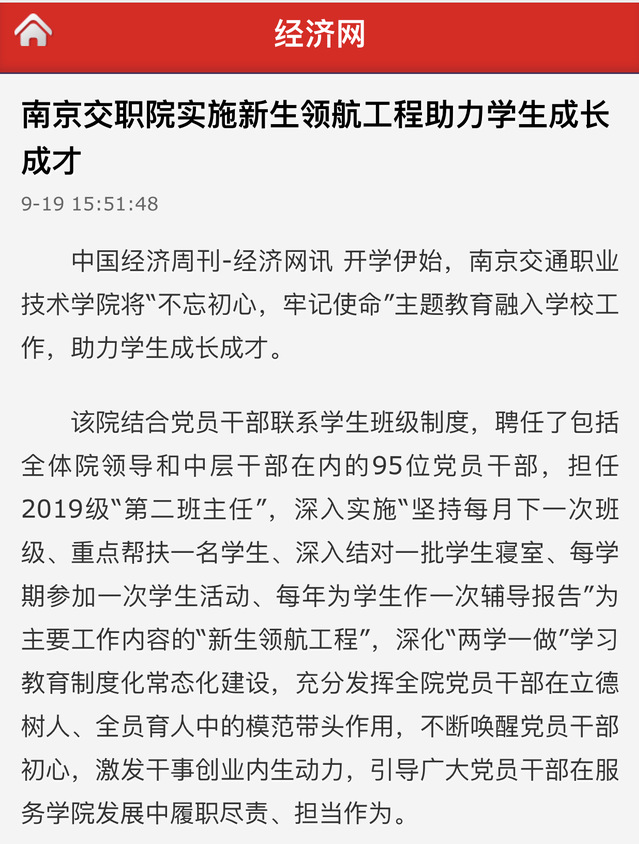【经济网】南京交职院实施新生领航工程助力学生成长成才