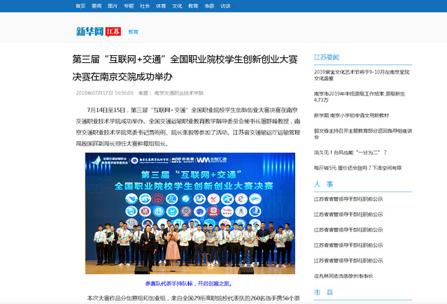 【新华网】第三届“互联网+交通”全国职业院校学生创新创业大赛决赛在南京交院成功举办
