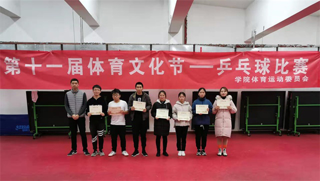 12月4日,学院第十一届体育文化节学生乒乓球团体赛圆满结束。本次比赛为混合团体赛:共有七个院系队近100名选手参赛,经过6轮42场激烈比赛,轨道交通学院乒乓球队获得冠军、电子信息工程学院乒乓球队获得亚军、运输管理学院乒乓球队获得第三名的优异成绩,路桥与港航工程学院、汽车工程学院、人文艺术系、建筑工程学院乒乓球队分列四到七名。