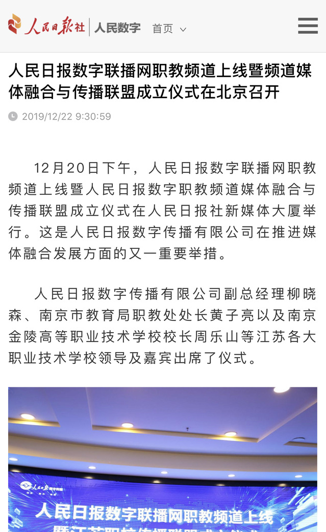 【人民日报社·人民数字】人民日报数字联播网职教频道上线暨媒体融合与传播联盟成立仪式在北京召开
