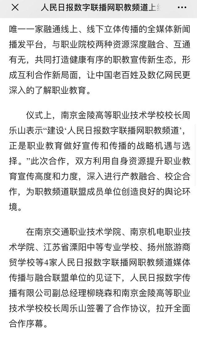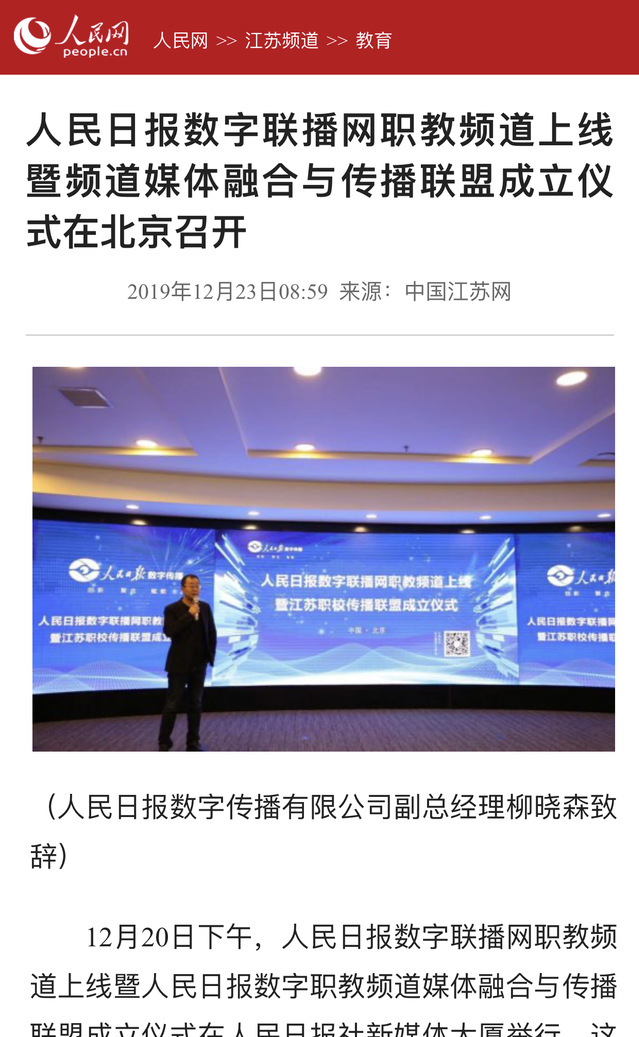 【人民网·江苏频道】人民日报数字联播网职教频道上线暨频道媒体融合与传播联盟成立仪式在北京召开