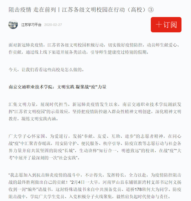 【学习强国】阻击疫情 走在前列丨江苏各级文明校园在行动(高校)③