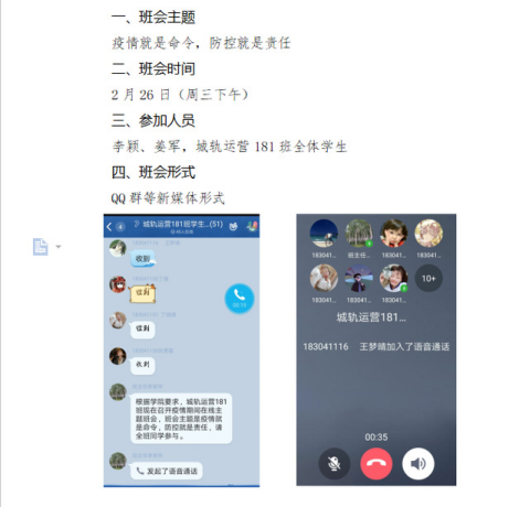 为深入贯彻落实学院党委工作部署要求,充分发挥学生基层组织在抗击疫情中的凝聚引领作用,在线开学第一周,运输管理学院各班级积极组织开展了“疫情就是命令,防控就是责任”的主题云班会活动。