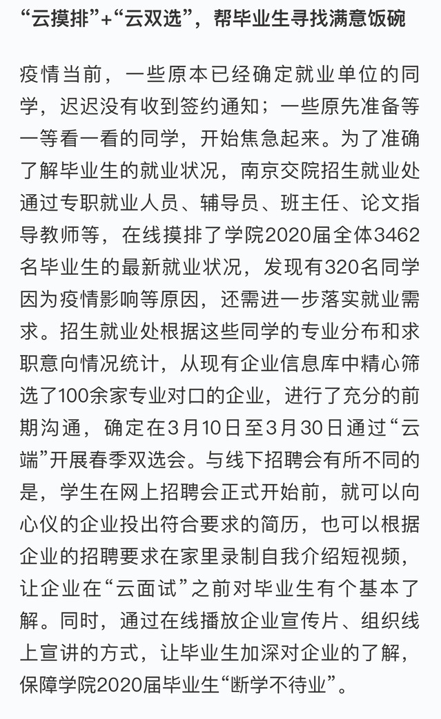 【学习强国】打出”云就业“组合拳 为毕业生就业保驾护航