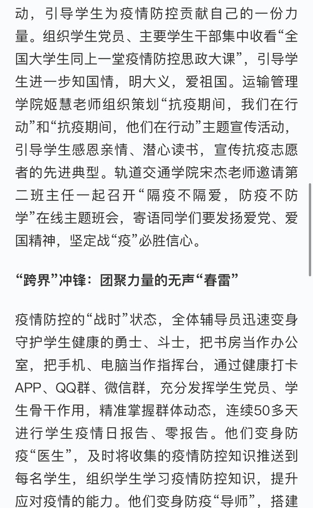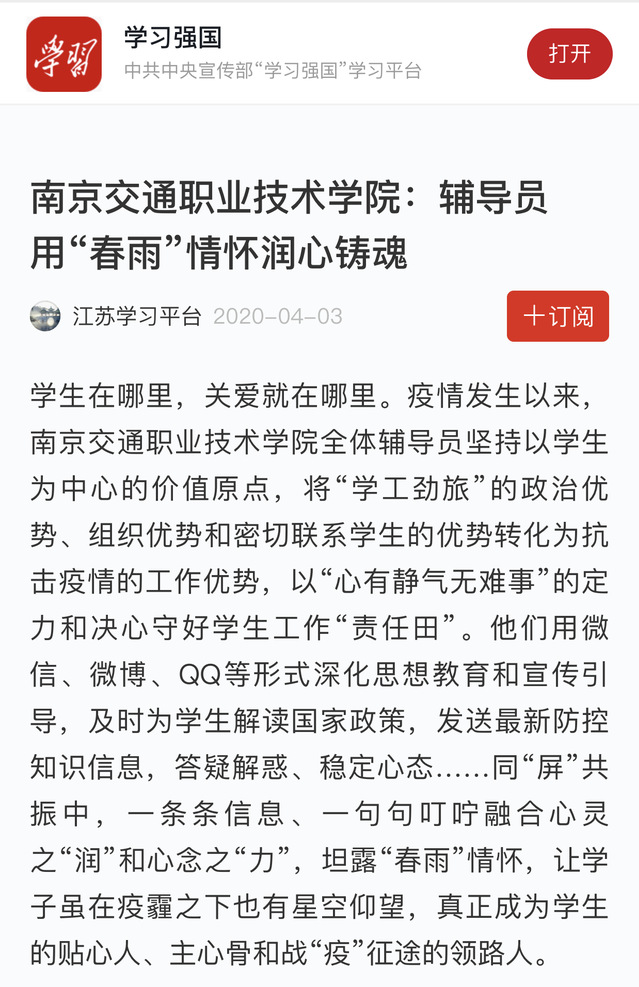 【学习强国】:南京交院辅导员用春雨情怀“润心铸魂”