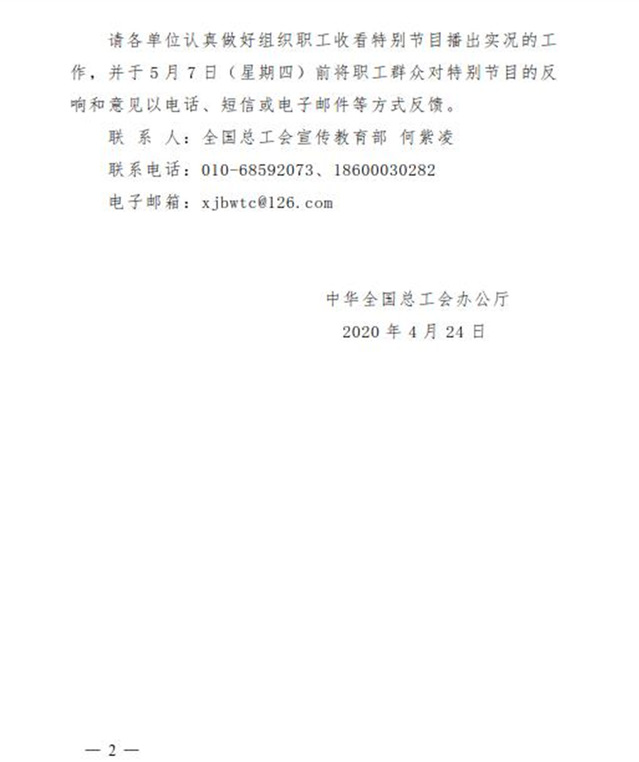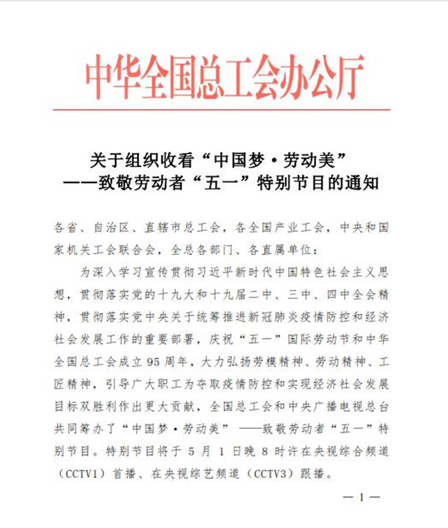 附件:中华全国总工会《关于组织收看“中国梦•劳动美”——致敬劳动者“五一”特别节目的通知》