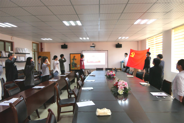 首先,全体毕业生党员面对党旗进行庄严宣誓,三位党员教师也一同重温了入党誓词,以此提醒大家时刻谨记党员身份。
