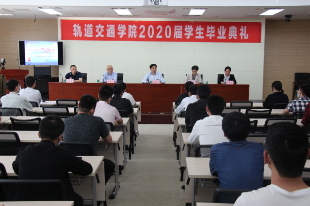 5月13日下午,轨道交通学院在图书馆B203隆重举行2020届学生毕业典礼。因为新冠肺炎疫情防控工作的要求,此次毕业典礼采用网络直播的方式同时进行,这必将是一个令人难忘的毕业时刻。学校王道峰副院长,轨道交通学院全体院领导、班主任代表及2020届20多名毕业生代表参加了现场毕业典礼,其他班主任、辅导员和毕业生在宿舍观看网络直播。毕业典礼由轨道交通学院党总支书记滕兆霞主持。