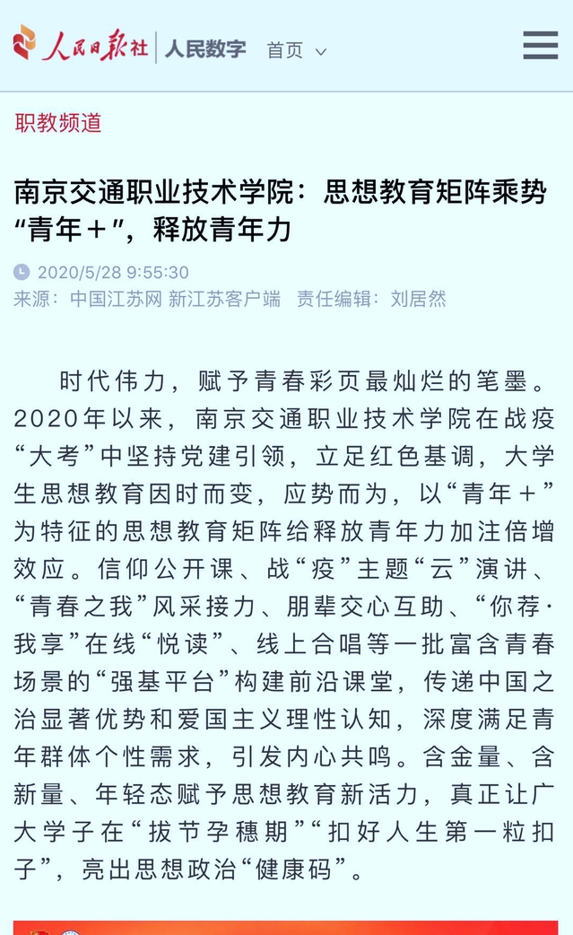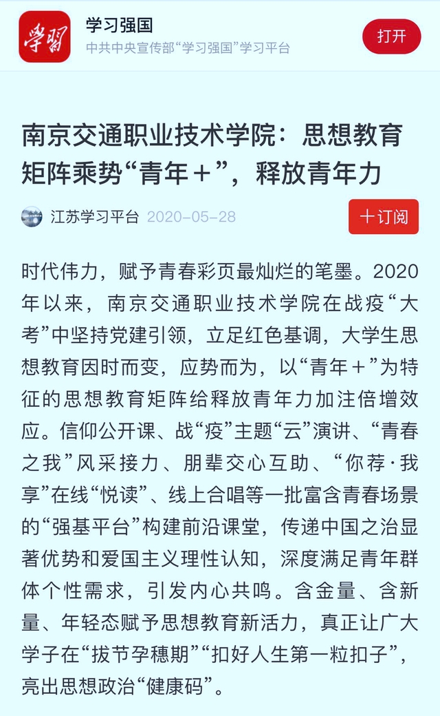 【学习强国】南京交通职业技术学院:思想教育矩阵乘势“青年+”,释放青年力