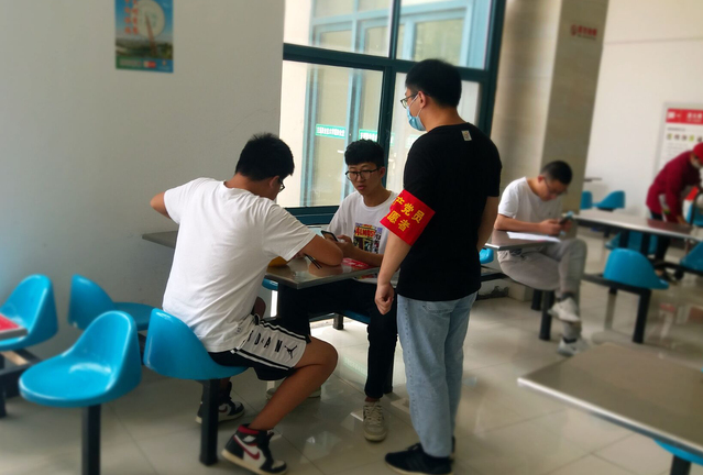 在学院春学期第四批学生返校开学之际,为加强疫情防控,让学生严格遵守疫情期间食堂就餐秩序和要求,支部党员积极主动参加食堂志愿服务,分别在第一、二、四、五食堂的进出口、就餐大厅等场所为师生就餐进行引导;监督进入食堂人员洗手、测量体温、排队打饭间隔一米、就餐一人一桌,防止聚集,确保食堂就餐稳中有序,吃得放心、安心、舒心。