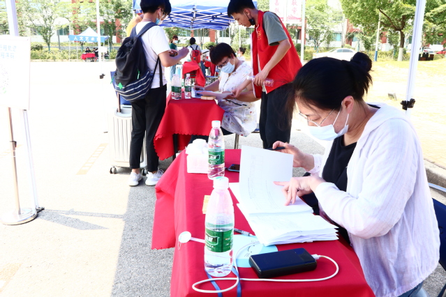 上午7:45,建筑工程学院迎来了6月1日报到的第一名学生。根据学院返校要求,学生返校实施“一查二验三登记”。在志愿者的协助下,学生出示苏康码、测量体温、查询行程轨迹并进行个人信息登记,负责老师在审核信息后发放宿舍出入证,即可搭乘学校的“爱心接送车”到公寓办理入住手续。当天下午,学院领导、班主任老师前往宿舍看望已到校学生,叮嘱学生做好宿舍卫生管理,尽早进入学习状态。