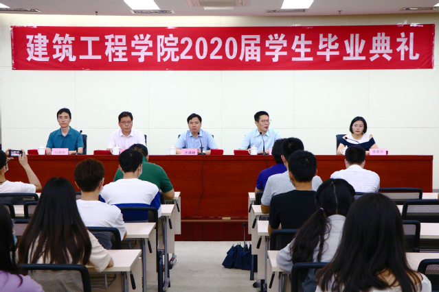 6月5日上午8点40分,建筑工程学院在图书馆B203隆重举行2020届学生毕业典礼。鉴于今年新冠肺炎疫情的特殊情况,毕业典礼采用“线上线下”相结合方式进行。学校王道峰副院长、建筑工程学院全体院领导、辅导员、班主任代表及2020届26名优秀毕业生代表参加了现场毕业典礼,其他毕业生、2018级和2019级学生通过网络直播方式在线观看。毕业典礼由建筑工程学院张文斌同志主持。