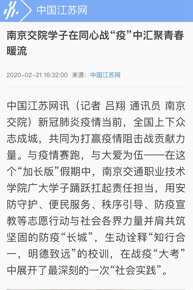 【中国江苏网】南京交院学子在同心战“疫”中汇聚青春暖流