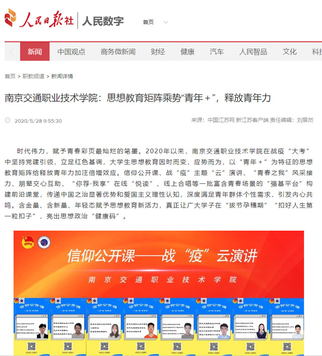 【人民日报社·人民数字】南京交通职业技术学院:思想教育矩阵乘势“青年+”,释放青年力