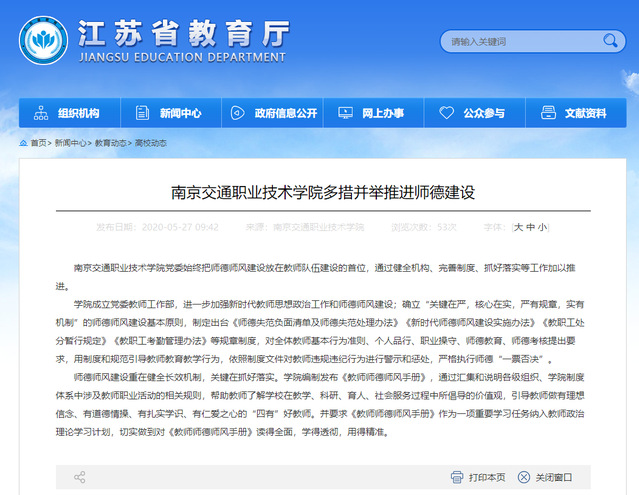 【江苏省教育厅】南京交通职业技术学院多措并举推进师德建设