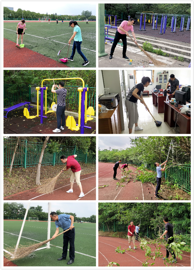 为响应爱国卫生运动倡议,巩固疫情防控成果,6月24日下午,体育部教师集体参加了体育场馆大扫除活动,重点清理了校田径场、篮球场和办公室卫生死角,并对北侧跑道旁的树技进行了修剪。活动营造了“人人关心卫生,人人讲究卫生”的校园氛围。