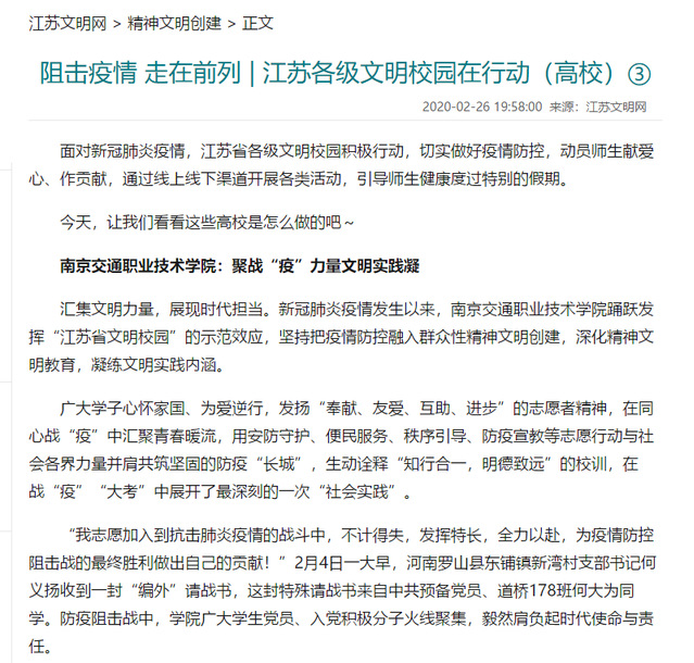【江苏文明网】阻击疫情 走在前列 | 江苏各级文明校园在行动(高校)③