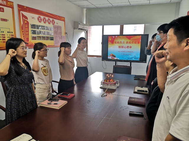 在各党支部书记的主持下,党员同志们认真学习了习近平总书记关于新冠肺炎疫情防控系列重要讲话精神,逐一分享了疫情期间令自己印象深刻的所见所闻,并交流了返校复学以来的工作经历和体验。第三党支部集中观看了《信仰-我的故事》,第四党支部为全体党员集体过“政治生日”,重温入党誓词,以此祝福中国共产党99岁生日。