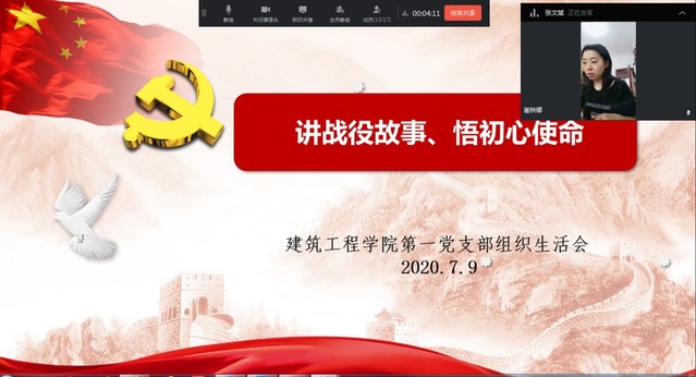 为庆祝党的生日,贯彻落实基层党组织常态化疫情防控“四个一”行动精神,7月9日,建筑工程第一党支部以“讲战疫故事、悟初心使命”为主题,在线召开“四个一”行动专题组织生活会。