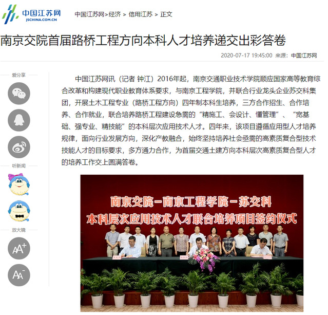 【中国江苏网】南京交院首届路桥工程方向本科人才培养递交出彩答卷