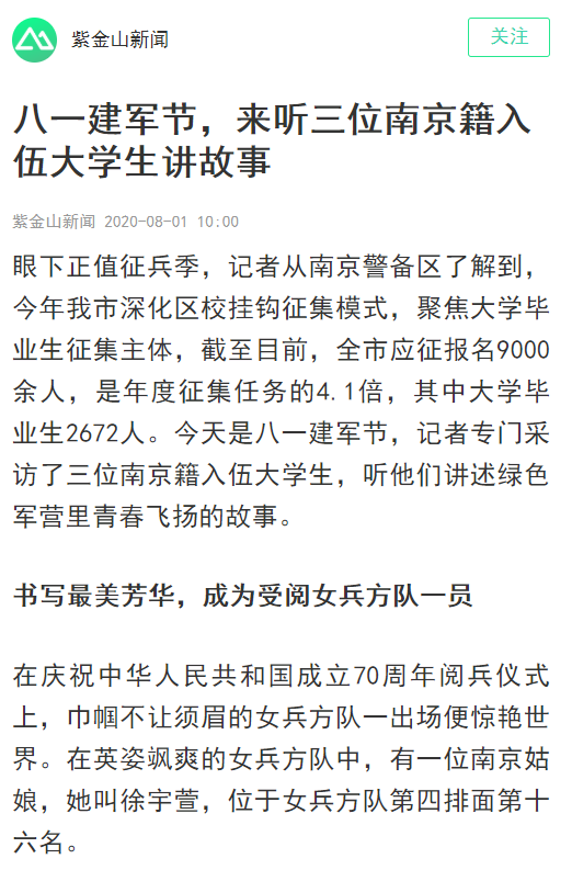 【紫金山新闻】八一建军节,来听三位南京籍入伍大学生讲故事