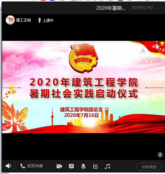 为顺利开展2020年暑期社会实践活动,广泛调动学生参与积极性,建筑工程学院团总支于2020年7月16日上午九点以线上会议形式举行暑期社会实践启动仪式。出席启动仪式的嘉宾有:学院党总支副书记唐喜芬老师、团总支王珣老师、曹莹老师、张东雪老师以及实践团队全体17名学生。启动仪式由王珣老师主持。