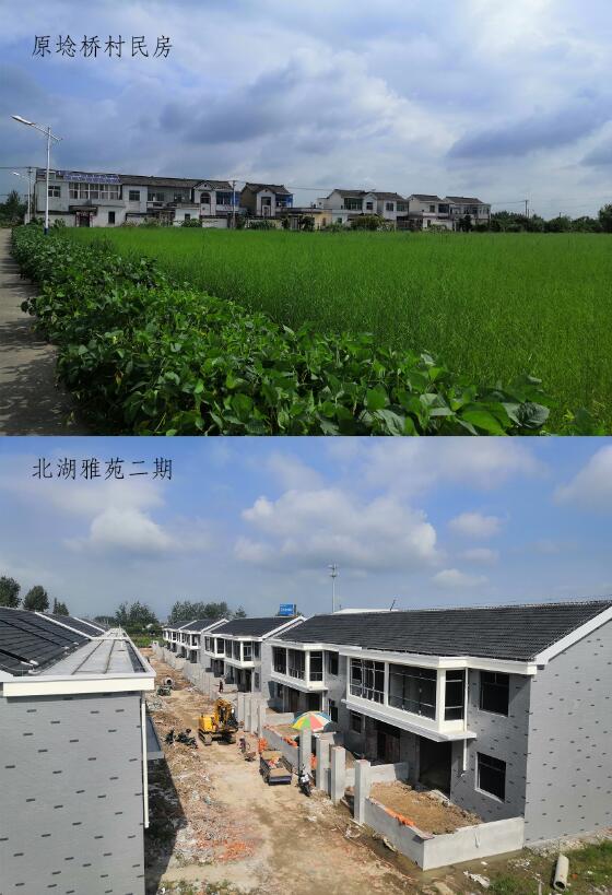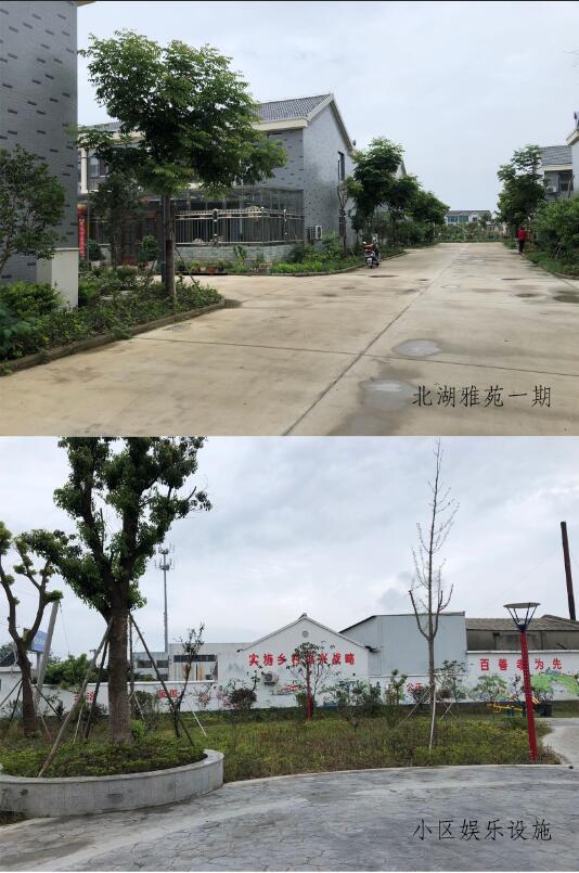 扬州市邗江区公道镇埝桥村北湖雅苑小区是北湖湿地公园项目的搬迁小区,走进北湖雅苑,首先映入眼帘的就是天蓝水清地绿的人居环境,村里的道路全部进行了硬化,道路两旁、房前屋后、池塘田园栽种了绿化树,农家小院优雅静谧美丽乡村建设让村庄焕然一新。据北湖雅苑的居民介绍,以前的房屋很破旧,道路不平整,交通不便利,出行生活都不方便,村里也没有安装公共休闲器材设施;如今生活方便,离公交站台更近,小区里设施健全,还增加了休闲娱乐的小广场。据施工方介绍北湖雅苑二期即将交房,春节之前所有北湖雅苑二期的居民都可以住上新房。