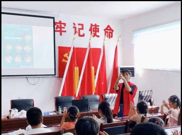 除了线下的课程,实践团队还录制了四节线上微课,主要分为两个板块,第一是卫生防疫及暑期安全预防;第二是爱国主义教育及树立远大理想。线上课程以抗击疫情为重点题材,帮助更多不在现场的孩子们学习防疫知识,通过“认识新冠病毒”、“预防新冠病毒”等一系列问题,让他们感受生命、珍惜生命、敬畏生命,明白自己的历史使命与责任担当,树立远大理想。
