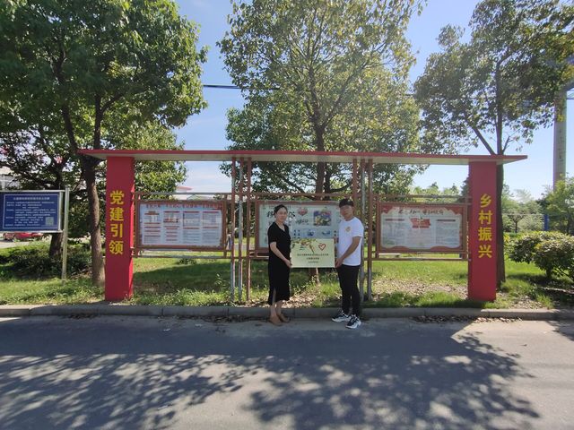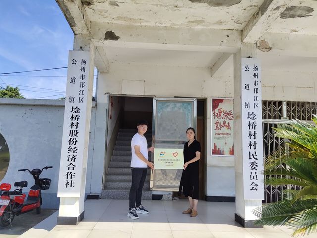 8月15日,校地双方在扬州市邗江区公道镇埝桥村举行简单而隆重的揭牌仪式,人文艺术系实践团代表罗逊与埝桥村团委书记陈云共同为“志愿服务基地”揭牌。