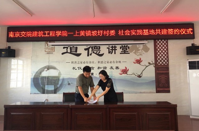 8月12日,建筑工程学院与上黄镇坡圩村委确立了共建社会实践基地的意向。当天下午,唐喜芬副书记代表建筑工程学院与坡圩村委在当地签订了大学生社会实践基地共建协议书。