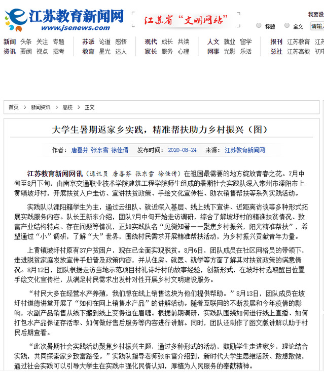 【江苏教育新闻网】大学生暑期返家乡实践,精准帮扶助力乡村振兴
