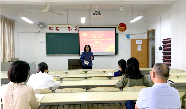 第一党支部书记胡俊作了题为“立德树人勇担当、爱岗敬业树新人”专题党课,结合观看《中国制度面对面》专题动画微课,组织讨论了中国制度对国计民生的关怀和保障;第二支部书记边伟领学习近平总书记教师节重要寄语,使全体党员对统筹常态化疫情防控和教育教学工作,全面推进新时代教师队伍建设,落实立德树人根本任务,培养德智体美劳全面发展的社会主义建设者和接班人有了更为深刻的理解。第三党支部书记唐志桥带领大家学习了《习近平谈治国理政》“谱写新时代中国特色社会主义新篇章”的部分内容,使全体党员进一步理解和把握中国特色社会主义进入新时代的新要求。在集体学习的基础上,第四党支部书记王雪琴以“总书记引领中国之治开辟新境界”为题为全体党员上了一堂生动的党课。
