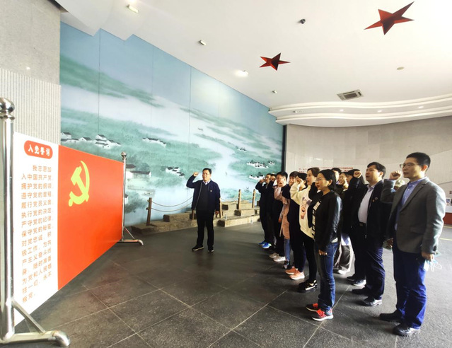 25日建筑工程学院党员及部分骨干教师来到沙家浜景区,沙家浜芦苇荡风景区是全国爱国主义教育示范基地、全国百家红色旅游经典景区。在沙家浜景区各位党员同志重温入党誓词、追忆革命历史,寻访红色文化足迹,接受革命理想主义教育。面对鲜红的党旗,全体党员神情庄重、精神饱满,高举右拳,重温入党誓词。铿锵有力的誓词,表达了全体党员对党的忠诚热爱和为共产主义事业奋斗终身的决心。