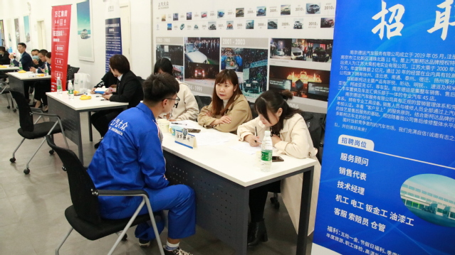 本次双选会共有拓速乐有限公司、中国太平洋财产保险股份有限公司、江苏宝汽、南京安吉名杰汽车销售服务有限公司等26家企业前来招聘,此外还有一汽大众、福特、奥迪、安吉等50余家合作企业,提供的岗位有汽车机电维修、汽车销售顾问、新能源汽车技术等,共计500余个岗位,供需比为1:1。。
