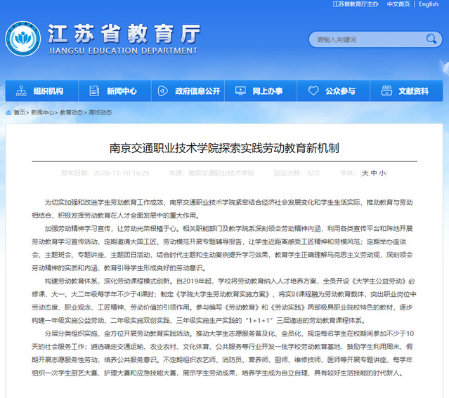 【江苏省教育厅】南京交通职业技术学院探索实践劳动教育新机制