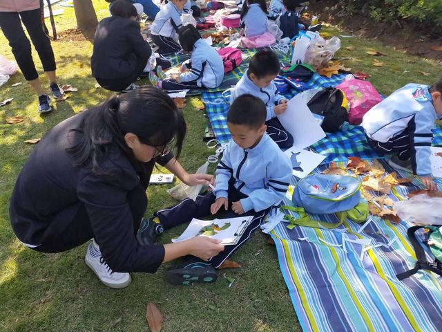 进入校园,小朋友们就被南京交院的美景所吸引,一路上,他们欢声笑语,带着好奇探索的目光东瞅瞅西看看,在老师与志愿者们的带领下,小朋友们拾秋叶、捡石子、寻秋虫,艳丽阳光下,处处是小朋友们欢欣雀跃的身影。搜集好多彩的树叶后,小朋友们在小湖边开始了自己的创作,用各式各样的叶子拼接成一幅幅可爱的图画,在阳光下描绘出他们眼睛里的五彩世界,体验着大自然的神奇与美丽。