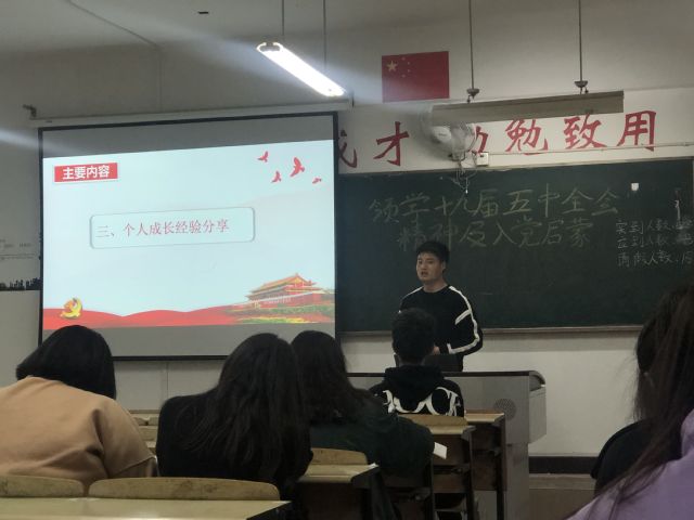 为进一步发挥学生党员先锋模范作用,引领2020级新生积极学习党和国家方针政策,提高学生政治理论水平,结合当前学习学习党的十九届五中全会精神的通知要求,11月19日晚,运输管理学院2018级19名预备党员同学深入2020级新生班级开展学生党员示范领学活动。
