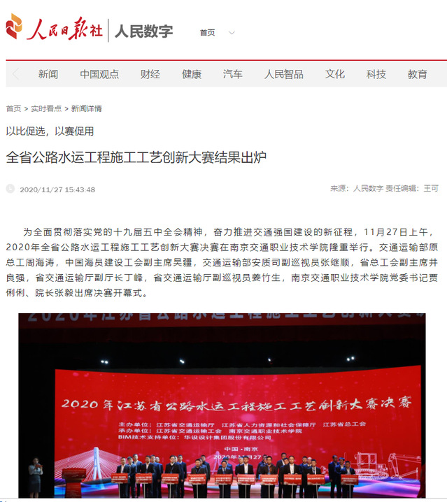 【人民日报·数字】全省公路水运工程施工工艺创新大赛结果出炉