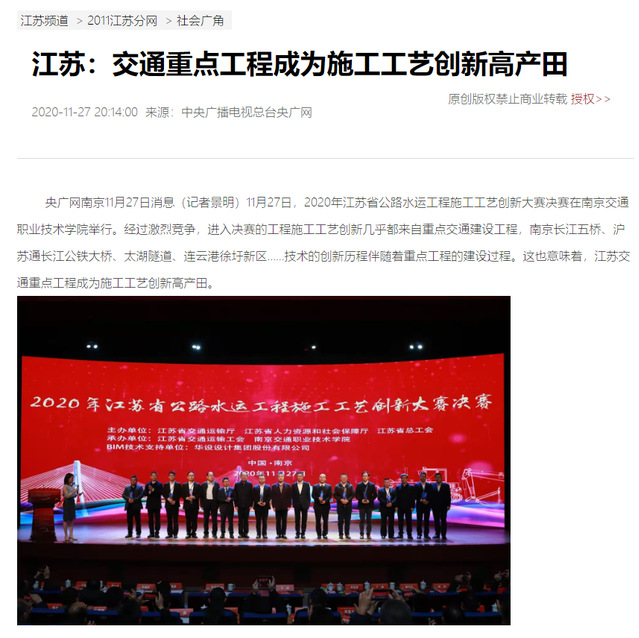 【中央广播电视总台央广网】江苏:交通重点工程成为施工工艺创新高产田