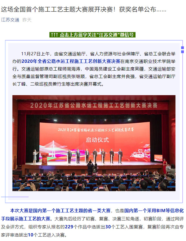 【江苏交通】这场全国首个施工工艺主题大赛展开决赛!获奖名单公布……
